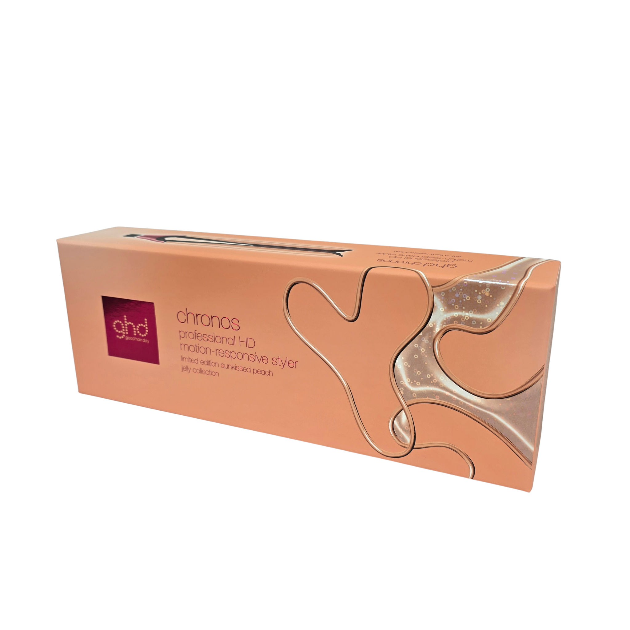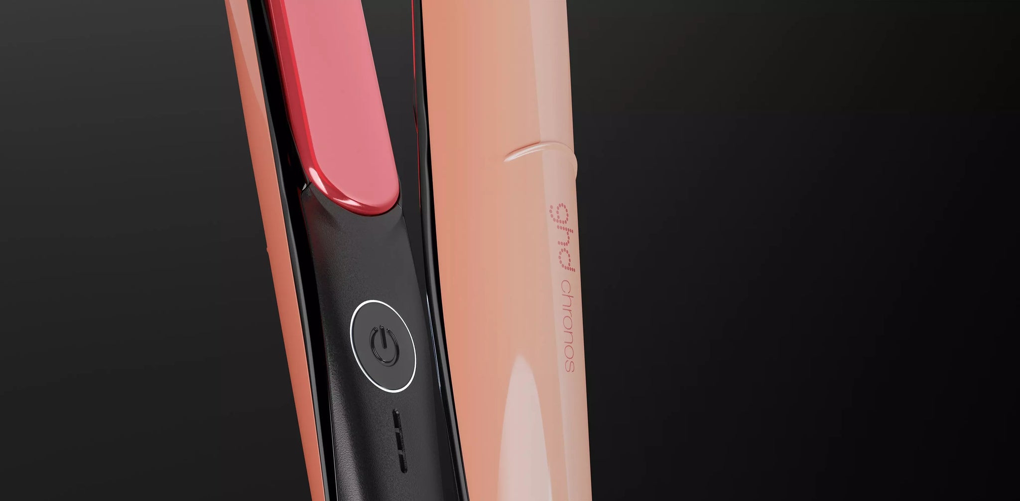 New ghd Chronos has been dipped in sun-kissed peach with sugar pink trims and is accompanied by a luxury heat resistant matching bag worth £X
